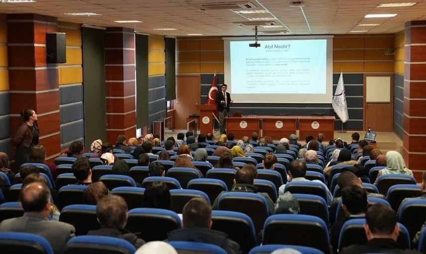 Doç. Dr. Mustafa Polat, akademik yazının temel bileşenlerini ele alırken doğru atıf kullanımının bilimsel etiğin en önemli unsurlarından biri olduğunu vurguladı. Atıfın, bilginin kaynağını görünür kılarak akademik dürüstlüğü desteklediğini belirten Polat, eksik ya da hatalı atıfların anlamı bozarak etik ihlallere yol açabileceğini ifade etti.