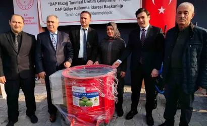 Elazığ’ın Keban ilçesinde, DAP Bölge Kalkınma İdaresi Başkanlığının desteğiyle yürütülen DAP Elazığ Tarımsal Üretim Geliştirme Projesi kapsamında çiftçilere makine dağıtımı gerçekleştirildi.