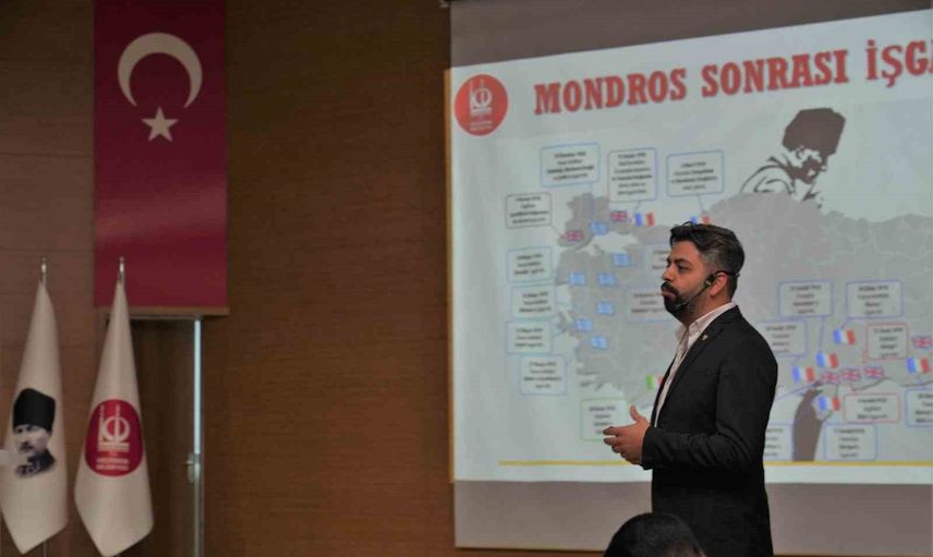 Seminerde sosyolog Hakan Çakmak, Mustafa Kemal Atatürk'ün yaşamı, liderliği, Cumhuriyet dönemi kazanımları ile ilke ve devrimlerine dair kapsamlı bir sunum yaptı. Etkinlik, saygı duruşu ve İstiklal Marşı'nın okunmasıyla başladı.