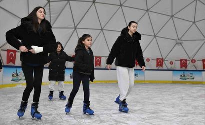 Keçiören Belediyesi'nin Ahmet Çalık Buz Pateni Pisti ara tatilde çocukları ağırlıyor
