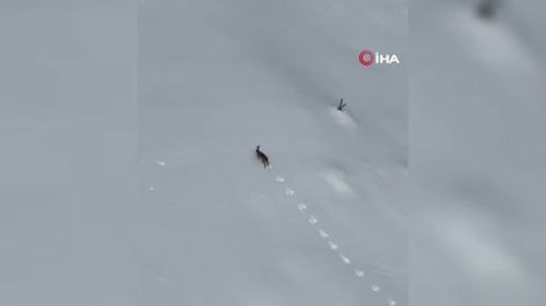 Keltepe Kayak Merkezi'nde Kar Üzerinde Koşan Yaban Tavşanı Görüntülendi