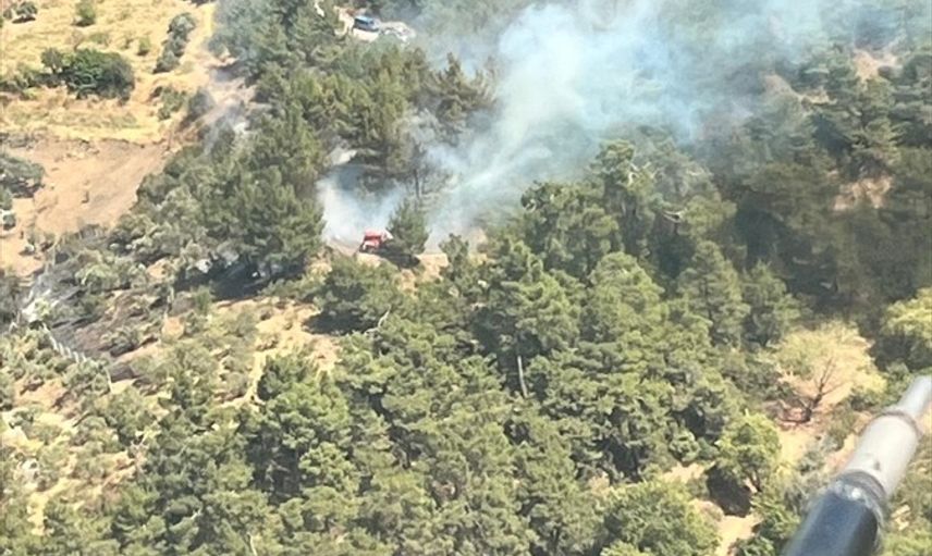 Henüz belirlenemeyen bir nedenle meydana gelen yangın için, ihbar üzerine İzmir Orman Bölge Müdürlüğü'ne bağlı 3 uçak, 4 helikopter, 17 arazöz, 3 su ikmal aracı ve 2 dozer bölgeye sevk edildi.