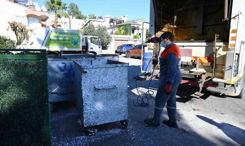 Kemer'de konteyner dezenfeksiyon çalışmaları sürüyor