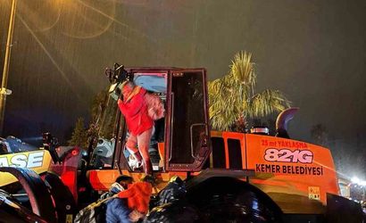 Bölgeye sevk edilen belediye ve jandarma ekipleri ile birlikte Kemer Belediye Başkanı Necati Topaloğlu de çalışmalara katıldı. Yoğun su birikintisi nedeniyle evlerinden çıkamayan aile, kepçe yardımıyla güvenli alana taşındı.