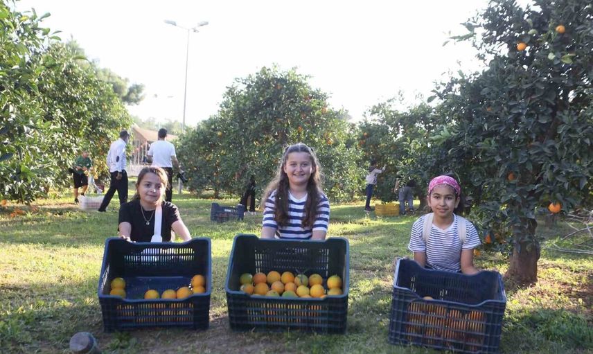 Kepez Belediyesi, Dokumapark’ta öğrencilerle portakal toplama etkinliği düzenledi