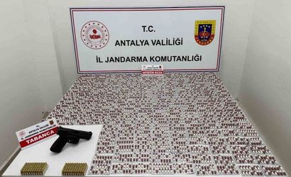 ANTALYA'DA JANDARMA EKİPLERİ TARAFINDAN GERÇEKLEŞTİRİLEN OPERASYONDA BİN 298 ADET UYUŞTURUCU HAP, 1 ADET RUHSATSIZ TABANCA VE ÇOK SAYIDA TABANCA MERMİSİ ELE GEÇİRİLDİ.