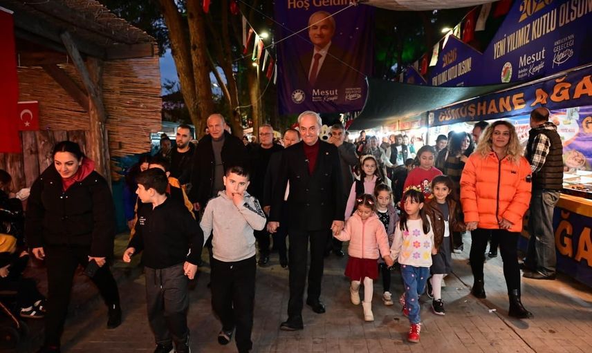 Kepez Belediye Başkanı Mesut Kocagöz etkinlik alanını ziyaret ederek çocuklarla birlikte vakit geçirdi ve yeni yıl coşkusunu ilçe halkıyla paylaştı.