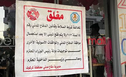 Irak'ın Kerkük kentinde yapılan denetimlerde 80'in üzerinde alışveriş merkezi ve katlı işyeri yangına karşı risk oluşturdukları gerekçesiyle kapatıldı.