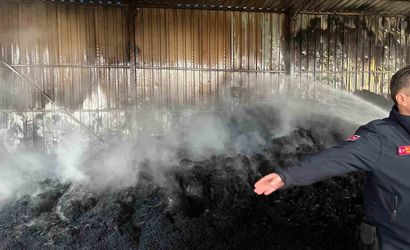 Keşan'da depoda çıkan yangında bin saman balyası zarar gördü