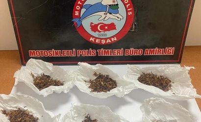 Keşan İlçe Emniyet Müdürlüğü ekiplerinin aramasında, 6 kağıt peçete içerisinde 10,64 gram uyuşturucuya bulanmış tütün ele geçirildi.