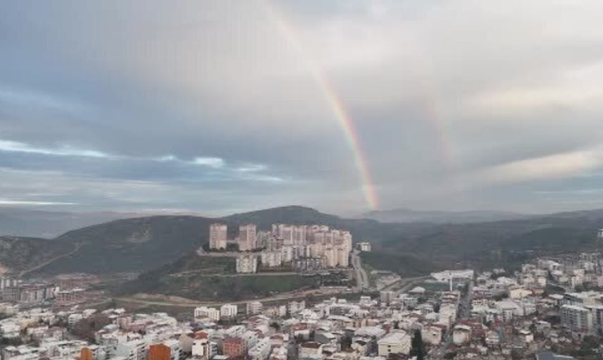 Öne çıkan nokta: Olayın kayda geçirilmesi, gökkuşağının hem yerden hem de havadan gözlemlenmesini sağlayarak kent silüetiyle birlikte nadir bir görsel kare oluşturdu.