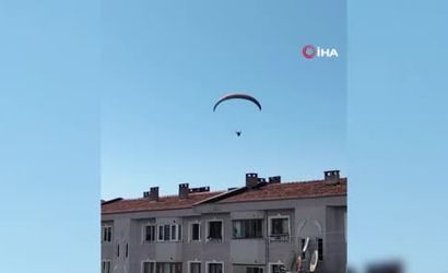 Olay, Kilimli ilçesinde geçen pazar günü meydana geldi. Arkadaşlarıyla birlikte kıraathanede oturan Okan Ece, evlerin çatılarına kadar alçalarak süzülen yamaç paraşütçüsünü fark etti ve o anları cep telefonuyla kaydetmeye başladı.