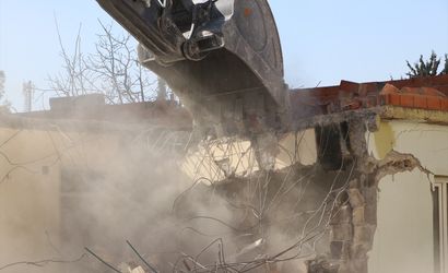 Bu kapsamda, İbrahim Karaoğlanoğlu Mahallesi'nde hasar alan ve yıkımına karar verilen tek katlı ev, iş makineleri yardımıyla güvenli bir şekilde yıkıldı. Yapılan yıkım çalışmalarıyla birlikte, kaldırılan enkazlar da hafriyat iş makineleri ile kamyonlara yüklenerek, belirlenen döküm sahalarına taşınıyor.