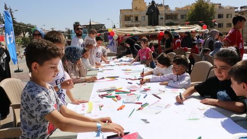Kilis’te ‘Filistinli çocuklar için çiz’ etkinliği: 300 metre uzunluğundaki resimler İstanbul’a gönderildi
