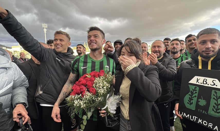Öregional Amatör Lig takımlarından Kilis Belediyespor'un futbolcusu Umut Koray Öz, takımının Adana Adaletgücü ile oynadığı maç sonrasında sahada sürpriz bir evlilik teklifi gerçekleştirdi.