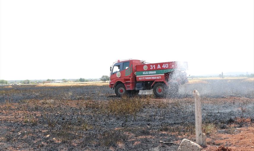 Kilis'te bir tarlada çıkan yangında, yaklaşık 150 dönüm buğday ekili alan zarar gördü.