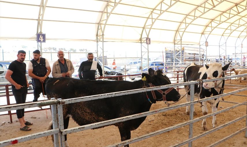Kilis'te Mücahitler Mahallesi'nde kurulan canlı hayvan pazarında kurbanlıklar satışa sunulmaya başlandı. Pazarda, küçükbaş hayvanlar 15-25 bin liradan, büyükbaş hayvanlar ise 100-350 bin liradan alıcı buluyor.