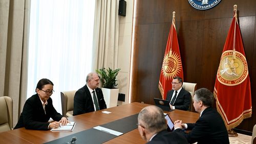Cumhurbaşkanı Caparov, Türkiye'nin Bişkek Büyükelçisi Ahmet Sadık Doğan'a stratejik işbirliği katkılarından dolayı şükran sundu.