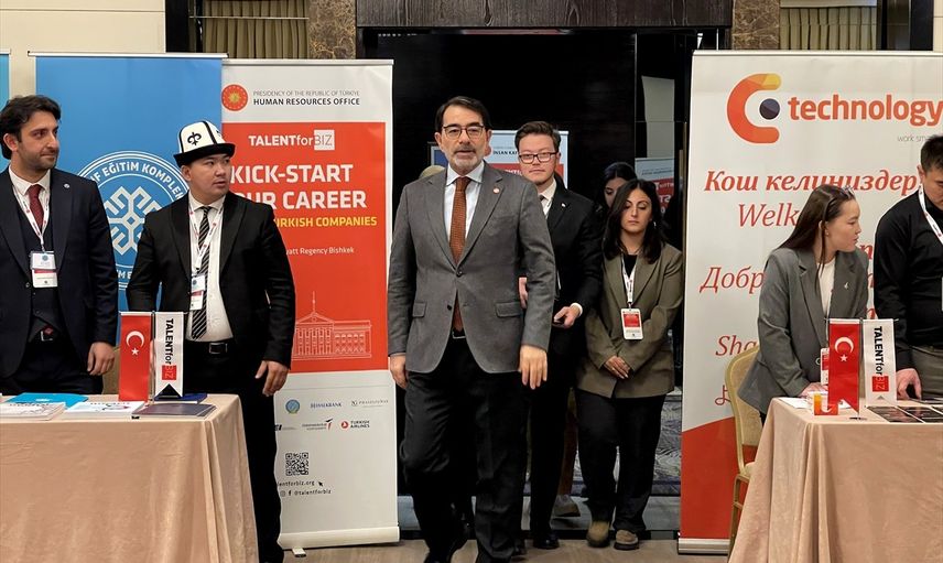 Kırgızistan'ın başkenti Bişkek'te, Türk şirketlerinin iş fırsatlarını sunduğu ve genç yeteneklerin işverenlerle buluştuğu 'Talent for BIZ' kariyer fuarı, büyük bir katılım ile gerçekleşti. Türkiye Cumhuriyeti Cumhurbaşkanlığı İnsan Kaynakları Ofisi tarafından düzenlenen fuar, üniversite öğrencileri ile Türk kurum ve şirketlerini bir araya getirdi.