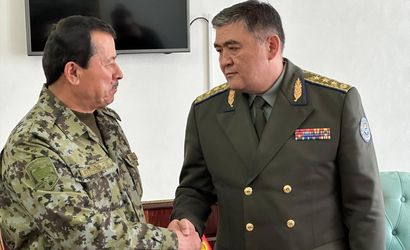 Kırgızistan ve Tacikistan'ın sınır belirleme hükümet heyetleri eş başkanları, Kırgızistan Milli Güvenlik Devlet Komitesi Başkanı Kamçıbek Taşiyev (sağda) ve Tacikistan Milli Güvenlik Devlet Komitesi Başkanı Saymumin Yatimov (solda) bir araya geldi.