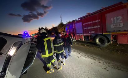 İhbar üzerine bölgeye sevk edilen itfaiye ekipleri, araç içinde sıkışan sürücüyü müdahale ederek çıkardı.