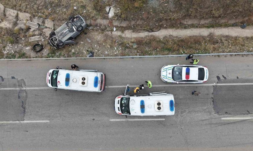 KIRIKKALE’DE SEYİR HALİNDEKİ BİR OTOMOBİL, ARKADAN BAŞKA BİR OTOMOBİLİN ÇARPMASIYLA BARİYERLERİ AŞARAK ŞARAMPOLE DEVRİLDİ.