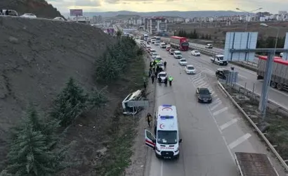 KIRIKKALE’DE KAMYONLA ÇARPIŞTIKTAN SONRA ŞARAMPOLE DEVRİLEN İŞÇİ SERVİSİNDEKİ 5 KİŞİ YARALANDI.