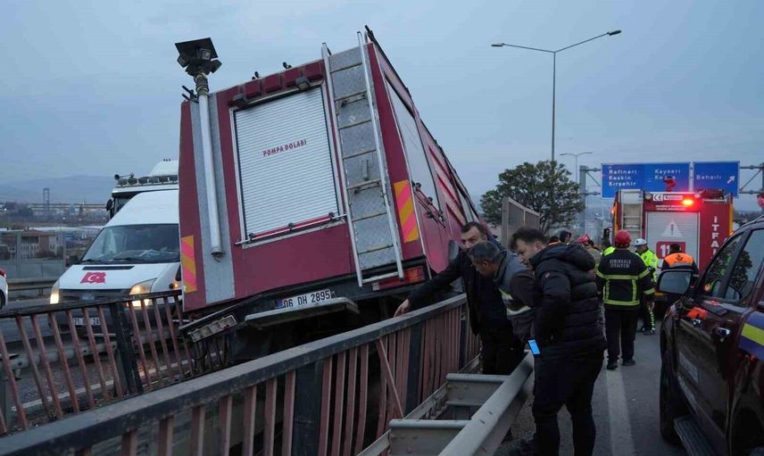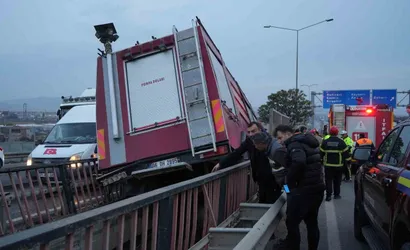Kırıkkale'de itfaiye aracı köprü aralığında asılı kaldı