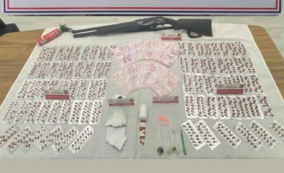 Edinilen bilgiye göre, Yahşihan ilçesinde jandarma ekipleri, A.A. (57) yönetimindeki hafif ticari aracı durdurdu. Narkotik köpeği ile araçta ve şüphelinin evinde yapılan aramalarda bin 133 adet ecza hapı, 13 adet extacy, 4 gram metamfetamin, 5 adet uyuşturucu kullanma aparatı, ruhsatsız av tüfeği ve 20 bin lira nakit para ele geçirildi.