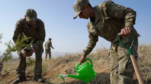 Kırıkkale'de Milli Ağaçlandırma Günü'nde yaklaşık 5 bin fidan toprakla buluşturulduKırıkkale'de, Cumhurbaşkanı Recep Tayyip Erdoğan'ın himayesinde ve Tarım ve Orman Bakanlığı koordinasyonunda yürütülen 'şahidimiz toprak, imzamız fidan, sevdamız yeşil vatan seferberliği' kapsamında Milli Ağaçlandırma Günü etkinlikleri düzenlendi. İl genelinde gerçekleştirilen çalışmalarda…