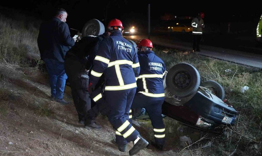 Kırıkkale Çevrealtı Caddesi'nde gece saatlerinde meydana gelen kazada, 71 FE 400 plakalı otomobilin sürücüsü S.B., araçta direksiyon hakimiyetini kaybetmesi sonucu takla atarak şarampole devrildi.