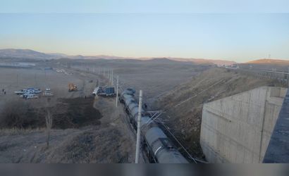 Ankara-Kırıkkale demiryolunda seyreden yük treni ise dolgu malzemesine çarparak raylardan çıktı. Trenin lokomotifi devrilirken, olay ihbar edildi. İhbar sonrası bölgeye itfaiye, sağlık ve jandarma ekipleri sevk edildi.