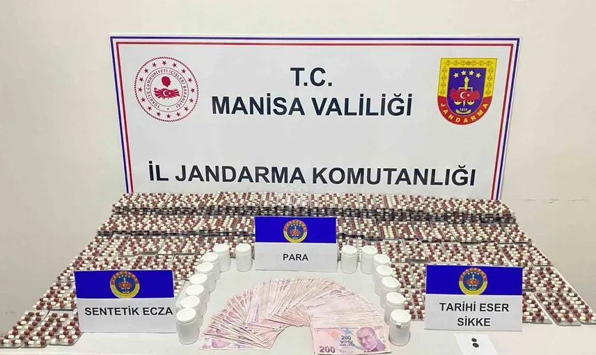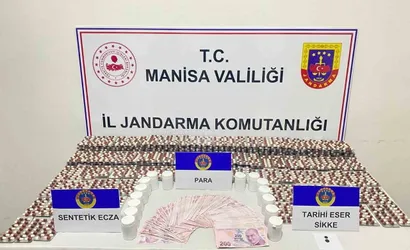 MANİSA’NIN KIRKAĞAÇ İLÇESİNDE JANDARMA EKİPLERİNİN TAKİBİ SONUCUNDA GERÇEKLEŞTİRİLEN OPERASYONDA, BİNLERCE SENTETİK ECZA VE TARİHİ SİKKELER ELE GEÇİRİLDİ. OAYLA İLGİLİ İKİ KİŞİ GÖZALTINA ALINDI.