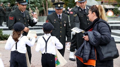Kırklareli'de Cumhuriyet'in 102. yılı etkinliklerinde 'gazeteci çocuklar', 'Yarın Cumhuriyeti ilan edeceğiz.' manşetli temsili gazete dağıttı ve protokol ziyaretleri gerçekleştirdi.