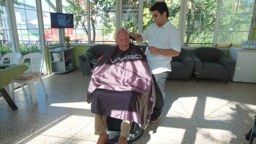 Ahilik Haftası'nda gönüllü kuaför ve berberler Kırklareli huzurevini ziyaret ederek sakinlerin saç bakımını yaptı ve hediyeler verdi.