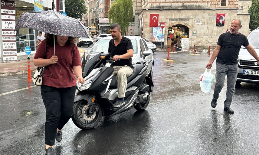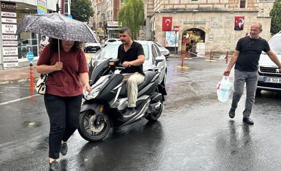 Kırklareli'nde aniden başlayan sağanaktan bazı vatandaşlar şemsiyelerle korunmaya çalıştı.