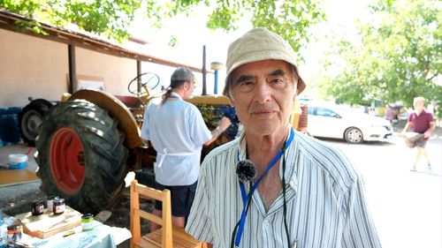 Asırlık traktörler Lüleburgaz'da ressamların eserlerine ev sahipliği yaptı.