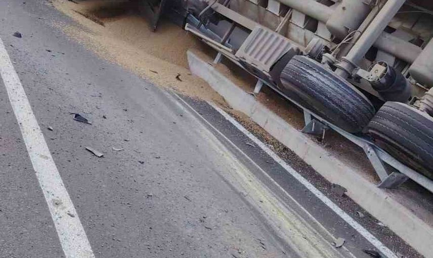 Edinilen bilgilere göre, çiftliğe yem taşıyan tır saat 19.00 sıralarında, virajı geçtikten sonra girdiği köprü üzerinde devrildi. Kazada ölü ya da yaralanan olmadığı belirtildi.
