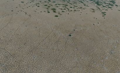 Kırklareli'nin Babaeski ilçesindeki Oruçlu Göleti, kuraklık nedeniyle kuruma noktasına geldi. Merada otlayan hayvanların su içmesi amacıyla kullanılan gölette suyun çekildiği bölgelerde çatlaklar oluştu.