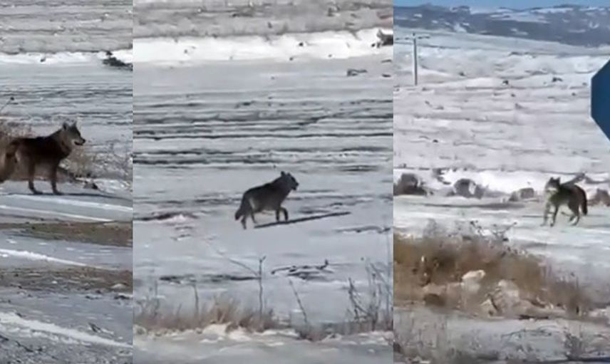 Çiçekdağı yakınlarında kar nedeniyle yiyecek arayan kurtlar, vatandaş tarafından fotoğraflandı