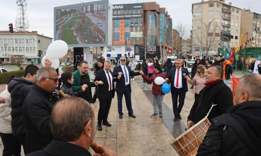 Beyazay Şubesi tarafından düzenlenen etkinlik, 2 Nisan kapsamında Cacabey Meydanı'nda gerçekleştirildi. Katılımcılar programda balonları gökyüzüne bırakırken, davul zurna eşliğinde halaylar çekildi ve düzenlenen yürüyüşle otizmli bireylerin toplumdan farklı olmadığı vurgulandı.