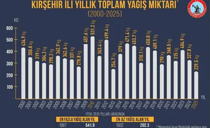 Çevre, Şehircilik ve İklim Değişikliği Bakanlığı Meteoroloji Genel Müdürlüğü tarafından yapılan değerlendirmede, Kırşehir'in 1930'dan günümüze uzanan yağış kayıtları temel alındı. Yapılan analizlere göre 2025 yılı, 229,5 milimetre yağış miktarı ile söz konusu dönemde en az yağış alan ikinci yıl olarak kayıtlara geçti.