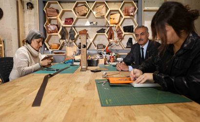 Nafiye Selin Durmuş tamamen el işçiliğiyle üretilen deri ürünlerini Zanaatkarlar Çarşısı'nda sergiliyor. Lise eğitimini resim bölümünde, üniversite öğrenimini moda tasarımı alanında tamamladığını belirten Durmuş, dericiliğe duyduğu ilgiyle mesleğe yeni bir soluk getirdiğini aktarıyor.