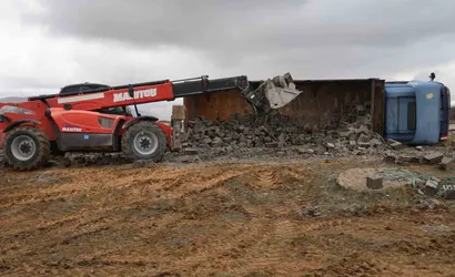 Yola dökülen briketlerin temizlenmesi ve aracın kaldırılması için ekipler çalışma başlattı; trafik çalışmalar süresince kontrollü şekilde sağlandı.