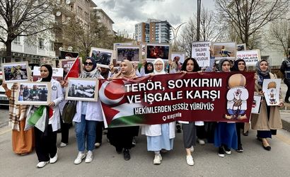Kırşehir'de, İsrail'in Gazze'ye yönelik saldırılarına tepki amacıyla yürüyüş düzenlendi. Kırşehir Askerlik Şubesi önünde bir araya gelen aralarında doktor ve tıp fakültesi öğrencilerinin de bulunduğu sağlık çalışanları, ellerindeki Türk, Filistin ve Doğu Türkistan bayrakları ile İsrail aleyhine çeşitli yazıların yer aldığı döviz ve pankartlarla Cacabey Meydanı'na kadar yürüdü.