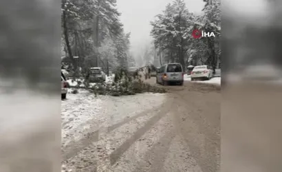 Ankara'nın Kızılcahamam ilçesinde etkisini sürdüren kar yağışı nedeniyle Soğuksu Milli Parkı'nda bulunan bir çam ağacı, karın ağırlığını taşıyamayarak kökünden yola devrildi. Olayda can kaybı ya da yaralanma yaşanmadı.