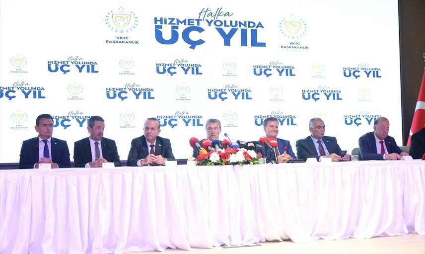 Kuzey Kıbrıs Türk Cumhuriyeti (KKTC) Başbakanı Ünal Üstel (fotoğrafta), Demokrat Parti Genel Başkanı Fikri Ataoğlu ve Yeniden Doğuş Partisi Genel Başkanı Erhan Arıklı ile düzenlediği basın toplantısında iktidarda geçirdikleri üç yılın değerlendirmesini yaptı.