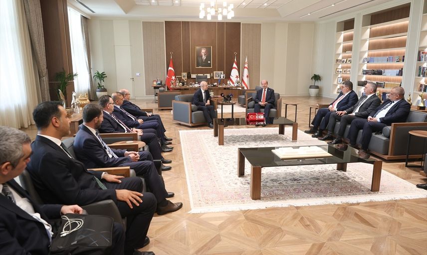 Kabulde, Türkiye'nin Lefkoşa Büyükelçisi Ali Murat Başçeri, KKTC Maliye Bakanı Özdemir Berova ve diğer yetkililer de yer aldı. Cumhurbaşkanı Tatar, kabulde yaptığı konuşmada, Türkiye'nin, Cumhurbaşkanı Recep Tayyip Erdoğan liderliğinde yakın gelecekte daha güçlü bir konuma geleceğine olan inancını dile getirdi. Tatar, “Türkiye Yüzyılı”nın KKTC üzerindeki olumlu etkilerine değinerek, KKTC'nin bazı sıkıntılarının bulunduğunu ancak Türkiye'nin desteği ile geleceğe emin adımlarla ilerlediklerini kaydetti. Ziyaretinden dolayı Şimşek'e teşekkürlerini iletti.