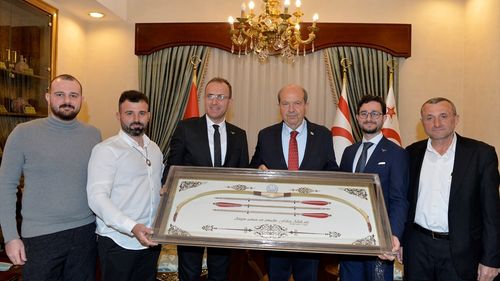 KKTC Cumhurbaşkanı Tatar, Türkiye Geleneksel Türk Okçuluk Federasyonu Başkanı Toksöz'ü Kabul Etti