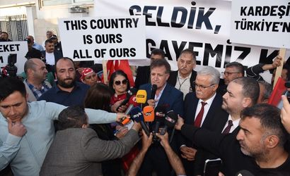 Arıklı, 'Türkiye Cumhuriyeti'nin temsilcisine saygılarımızı sunmak için buradayız. Bugün sembolik bir eylem yaptık. 26 Nisan'da miting yapacağız. Kıbrıs'ta Mücahit ile Mehmetçik birlikte can verdi. Biz biriz, beraberiz, kardeşiz.' şeklinde konuştu.